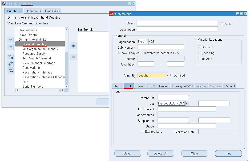 Below is the sample test procedure and API to get the Lot On-hand, Available to Reserve and Transactable quantities. Same we can query from Inventory responsibility under