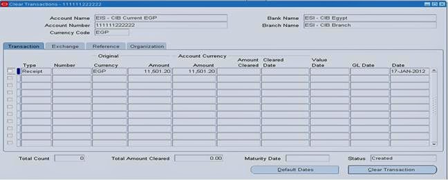 Navigate to Bank Statement Reconciliation or Manual Clearing Window to Reconcile the Transfer in Both Banks: